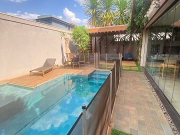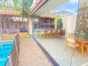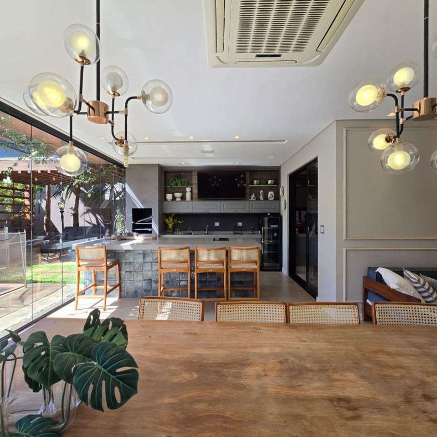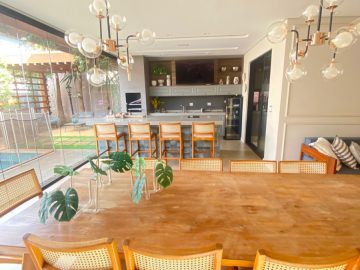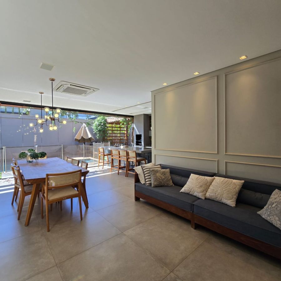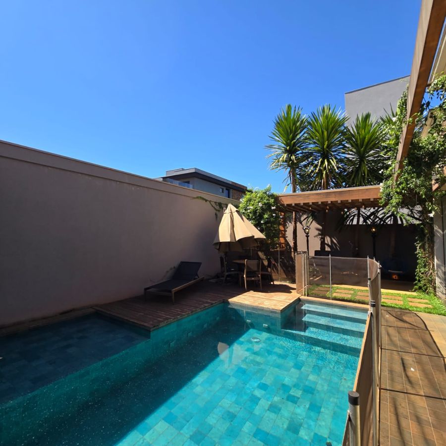 Área Gourmet com automação de som, vestiário externo, piscina automatizada com iluminação e aquecimento.
