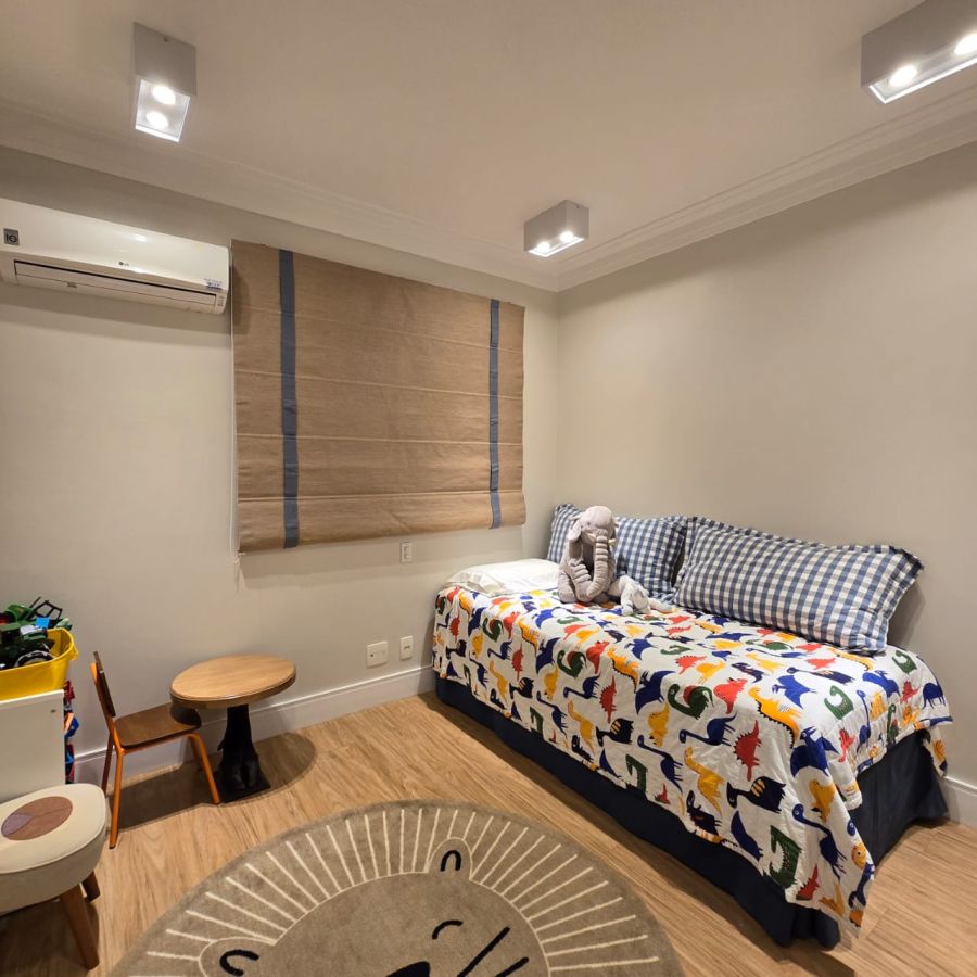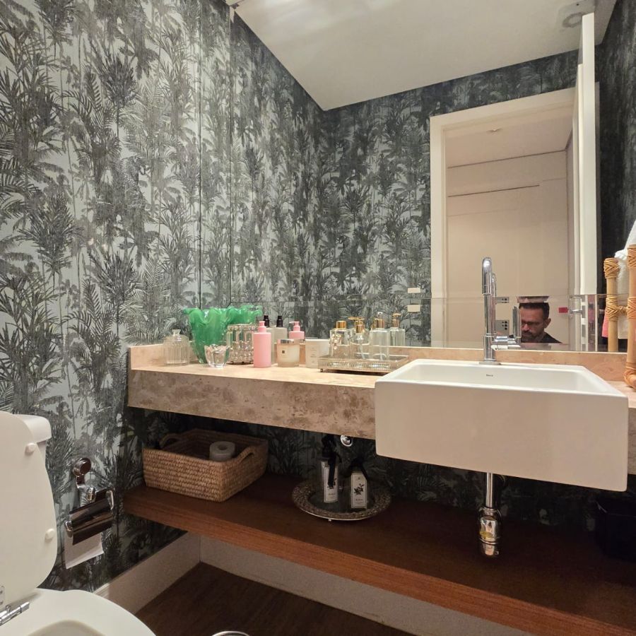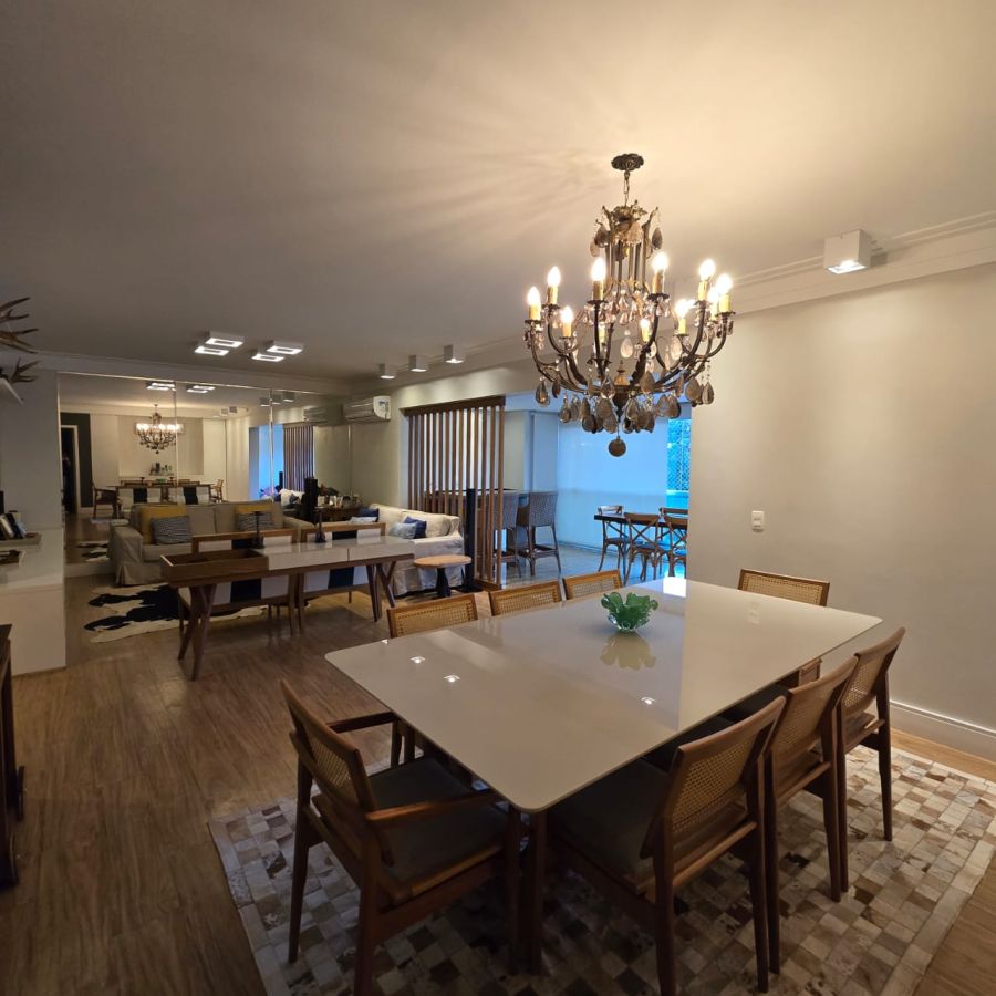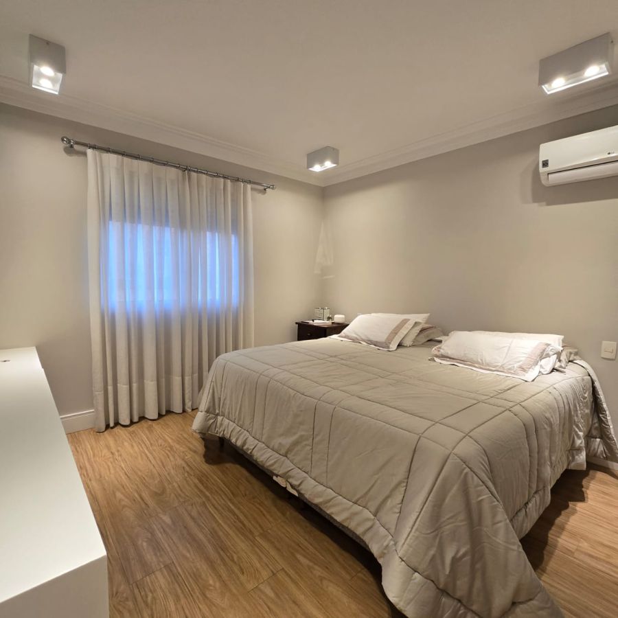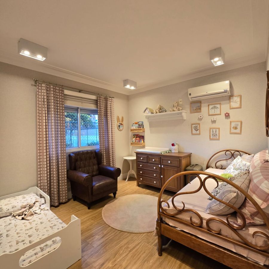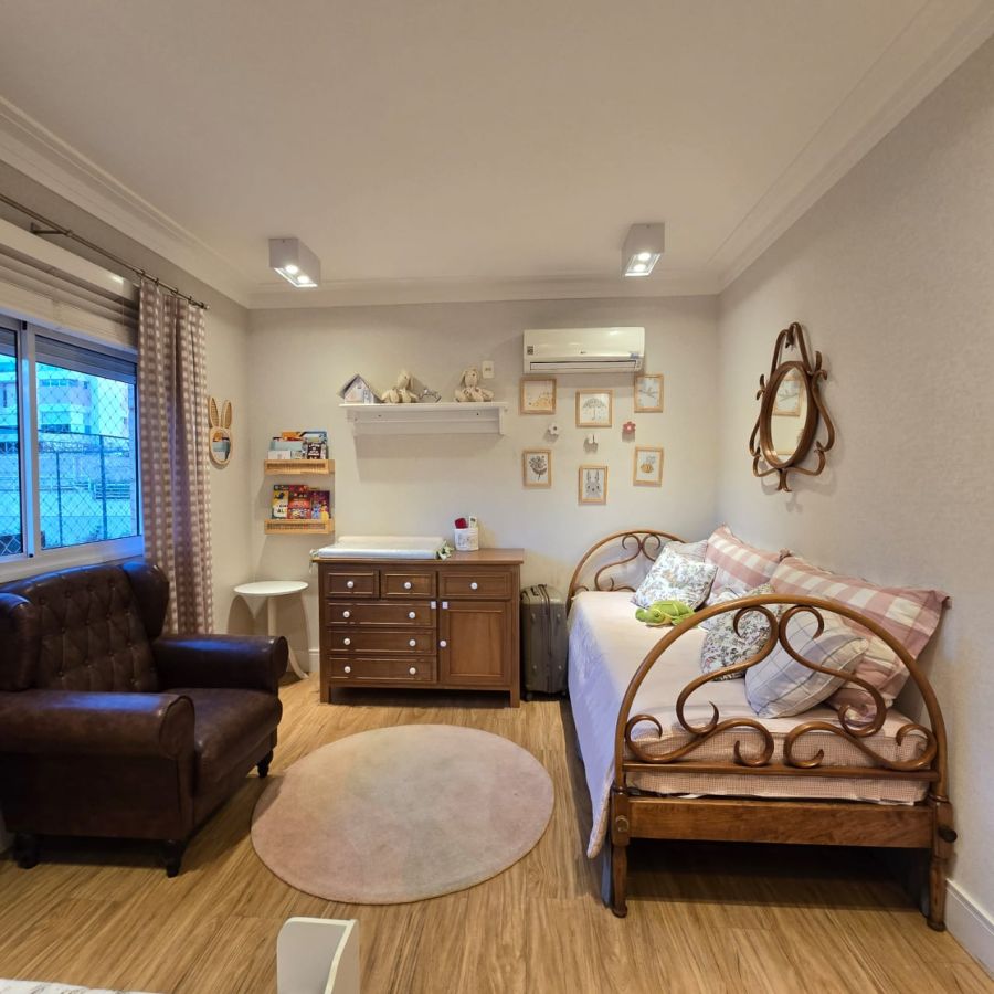 Sala 2 ambientes ampla e ar condicionado, lavabo, escritório, cozinha planejada, área de serviço com banheiro, ainda conta com 3 suítes com armários e ar condcionado, sendo a máster com closet. Uma ampla sacada gourmet com churrasqueira com vista livre e fechamento em vidro e 3 vagas na garagem + box privativo.