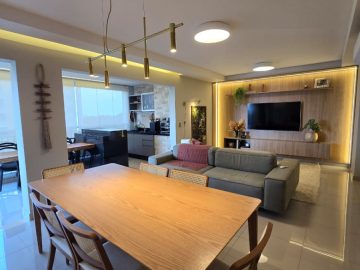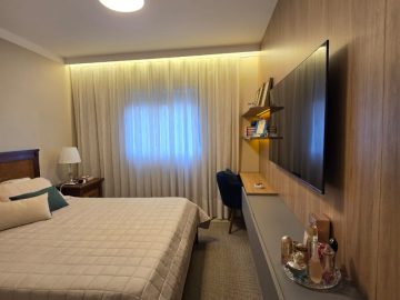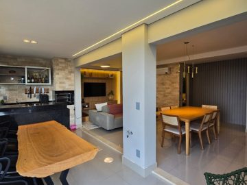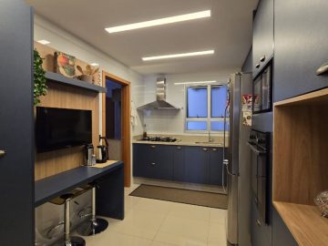 Sendo 3 suítes a master com closet e climatizados - sala dois ambientes - varanda gourmet com fechamento em vidro - cozinha planejada - área de serviço - vista panorâmica - rico em armários - 2 vagas de garagem.