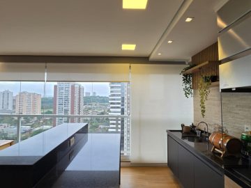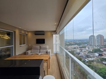 Com 184m², andar alto, face sombra e vista livre permanente! Hall privativo, ampla sala 2 ambientes, escritório, lavabo, varanda gourmet espaçosa com churrasqueira e fechamento em vidro, cozinha, lavanderia e banheiro de serviço. Na área íntima são 3 suítes, sendo a máster com closet e roupeiro. Completo em armários e iluminação. Climatizado. 3 vagas de garagem cobertas + box privativo.