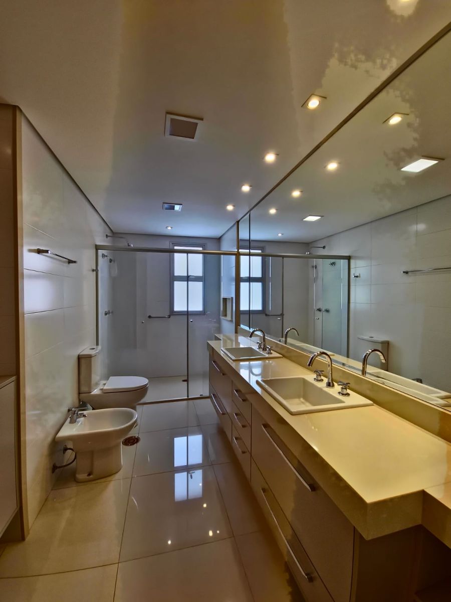 Com 4 suítes requintadas, cada membro da família terá seu próprio refúgio particular. Além disso, o apartamento conta com 6 banheiros, garantindo privacidade e conforto para todos. Um elegante lavabo complementa os espaços sociais.