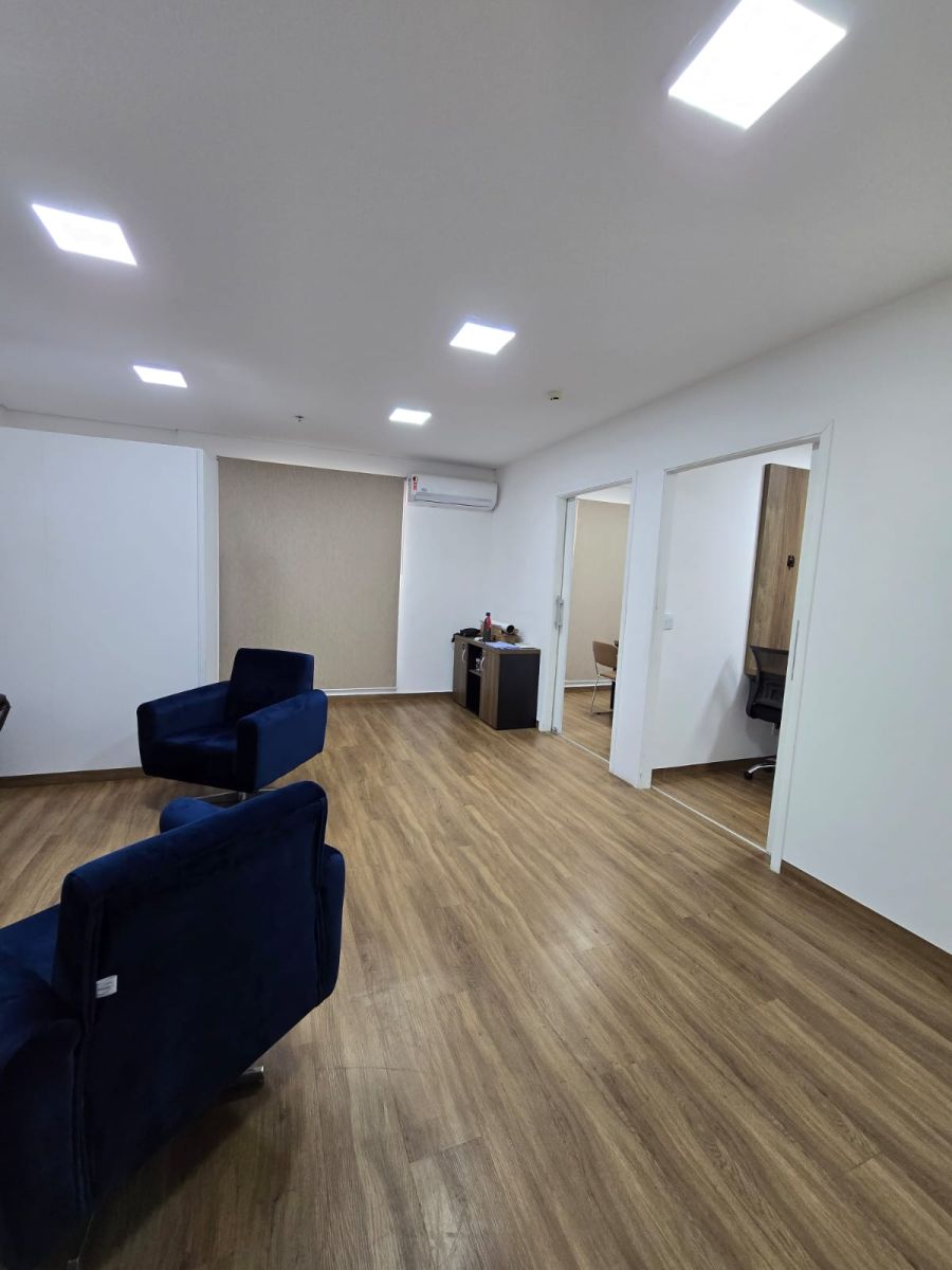 Andar alto - 57 m² - face sombra, dividido em 3 salas, 2 lavabo com gabinete e sacada, piso vinilico - rebaixo de gesso e iluminação - 1 vaga na garagem subsolo.