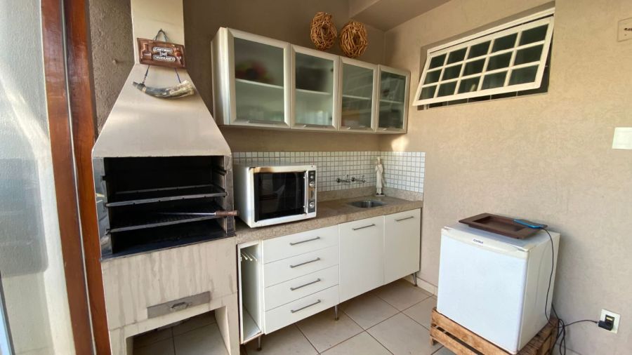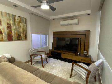 3 dormitórios, sendo 1 suíte - todos com armários, ar-condicionado e ventilador de teto, sala de tv e sala de jantar integradas com ventilador e ar-condicionado, banheiro social, cozinha rica em armários com cooktop e forno e lavanderia.