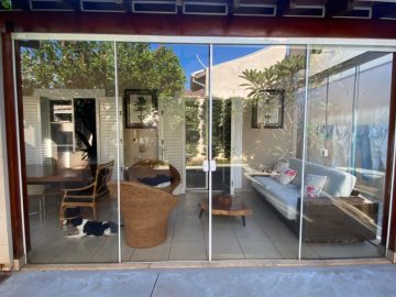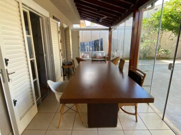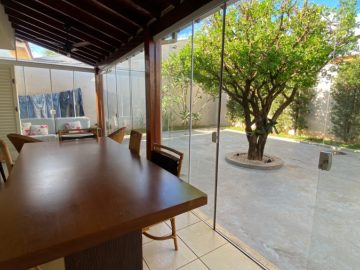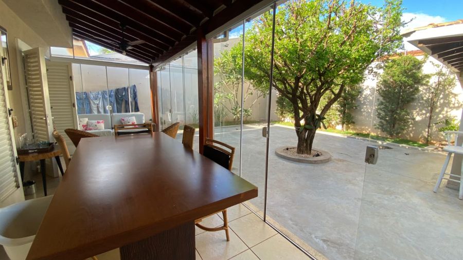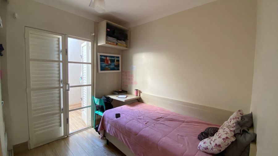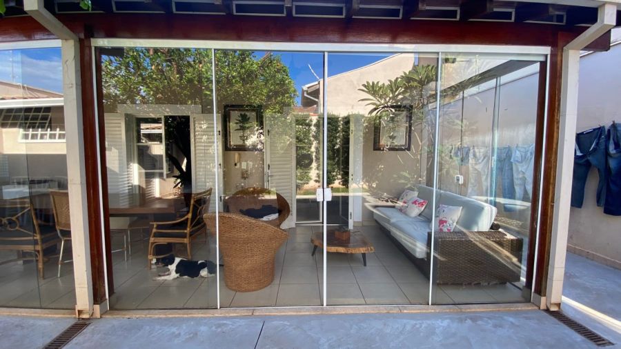 Todos os dormitórios possuem porta balcão, sendo dois deles com acesso a uma espaçosa varanda com churrasqueira e fechamento em vidro e um amplo quintal com depósito, banheiro externo e jardim. 3 vagas de garagem, sendo 2 cobertas.
