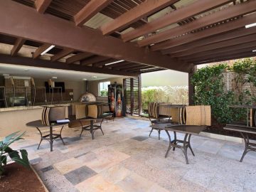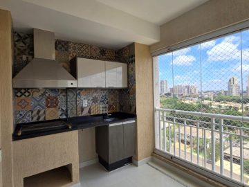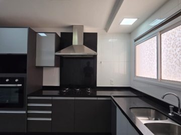 A cozinha integrada à sala de estar é um convite à culinária e à convivência, enquanto a sacada com churrasqueira oferece um espaço perfeito para refeições ao ar livre com uma vista panorâmica deslumbrante.