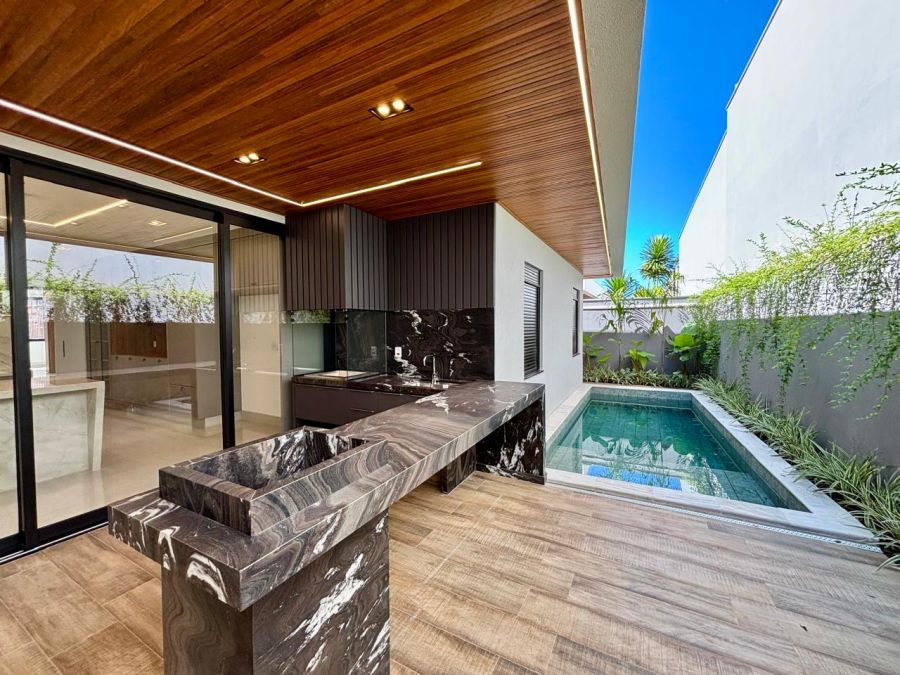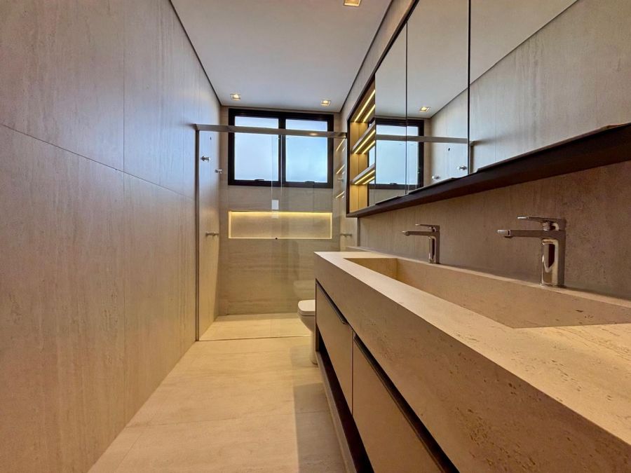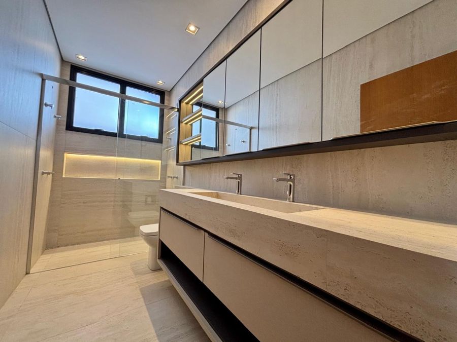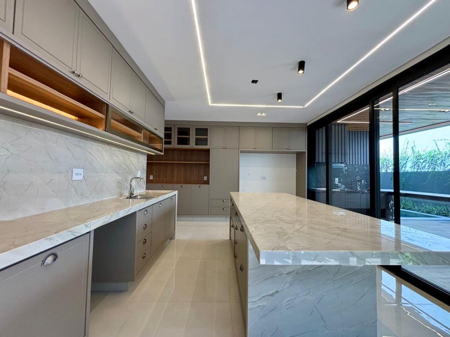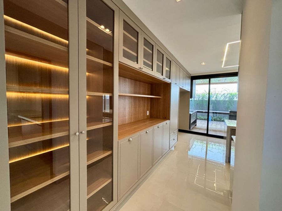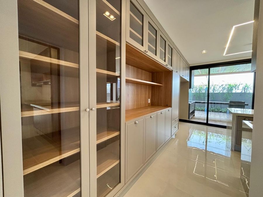 4 suítes - máster com closet, amplo living 2 ambientes com pé direito duplo, lavabo, home TV / escritório, cozinha com ilha e lavanderia. Área gourmet com churrasqueira, piscina com hidro e vestiário externo. Paisagismo com irrigação e iluminação. Armário multiuso no quintal. Aquecedor solar. Completa em marcenaria e iluminação. Acabameto premium. 4 vagas, sendo 2 cobertas.