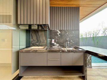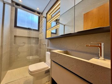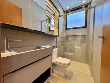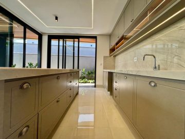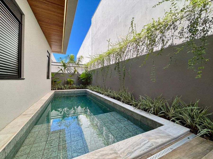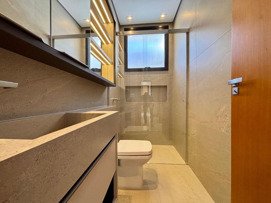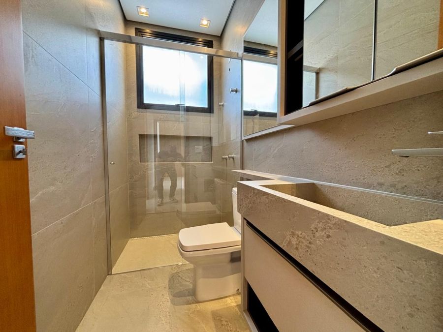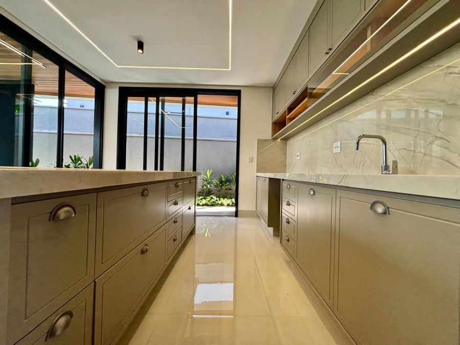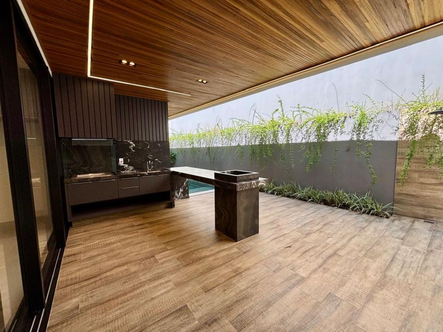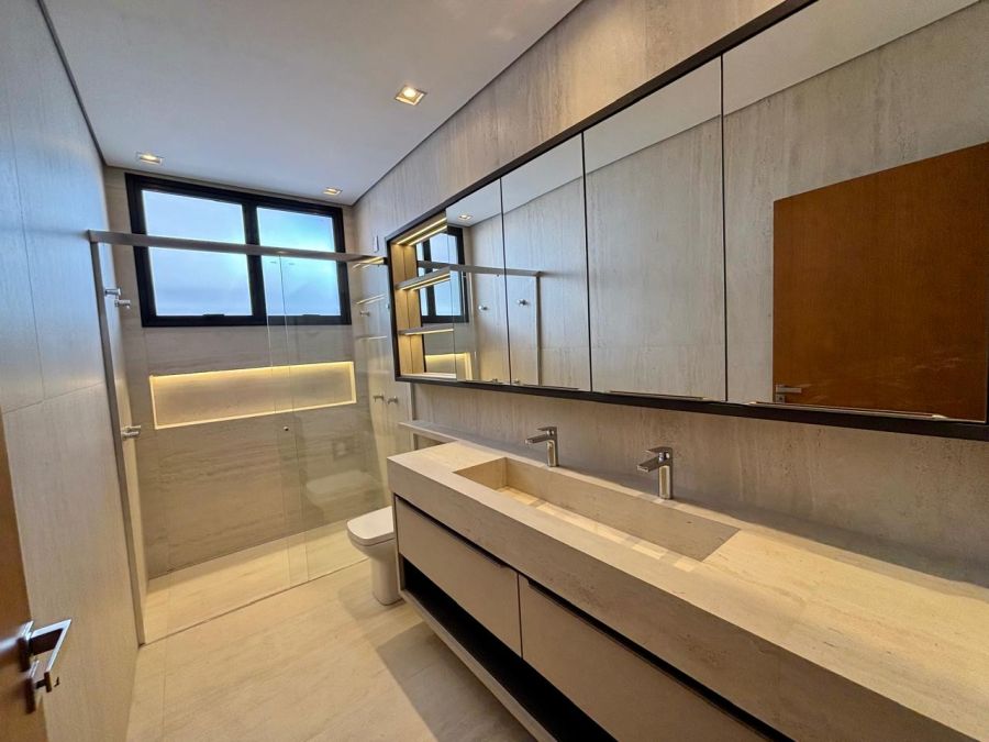 4 suítes - máster com closet, amplo living 2 ambientes com pé direito duplo, lavabo, home TV / escritório, cozinha com ilha e lavanderia. Área gourmet com churrasqueira, piscina com hidro e vestiário externo. Paisagismo com irrigação e iluminação. Armário multiuso no quintal. Aquecedor solar. Completa em marcenaria e iluminação. Acabameto premium. 4 vagas, sendo 2 cobertas.