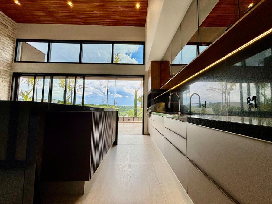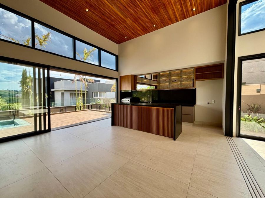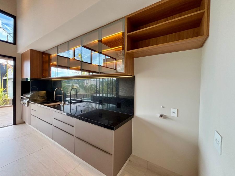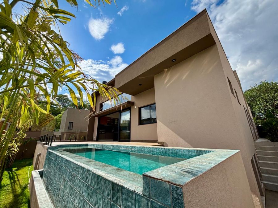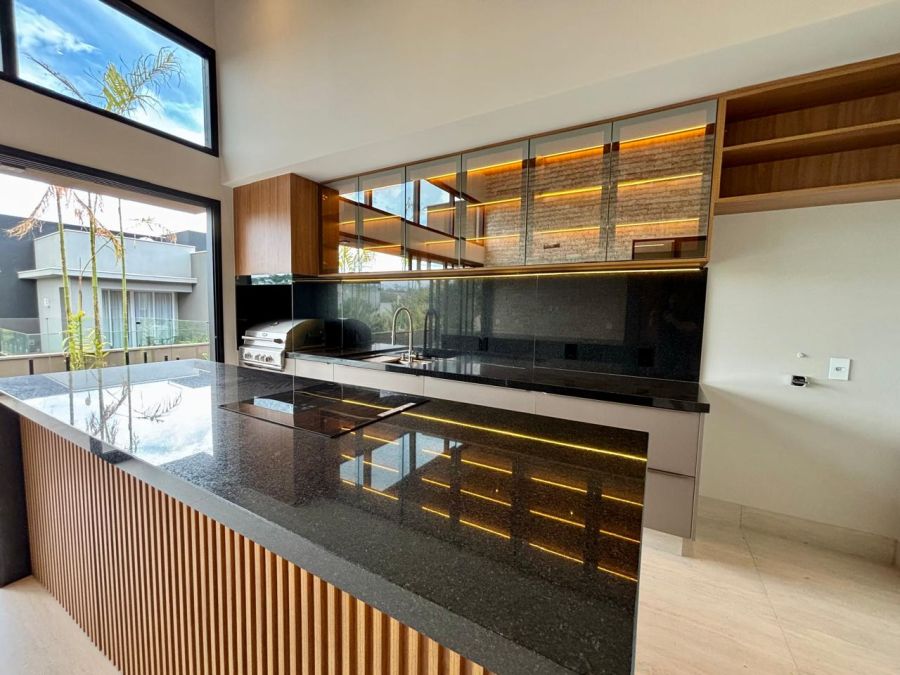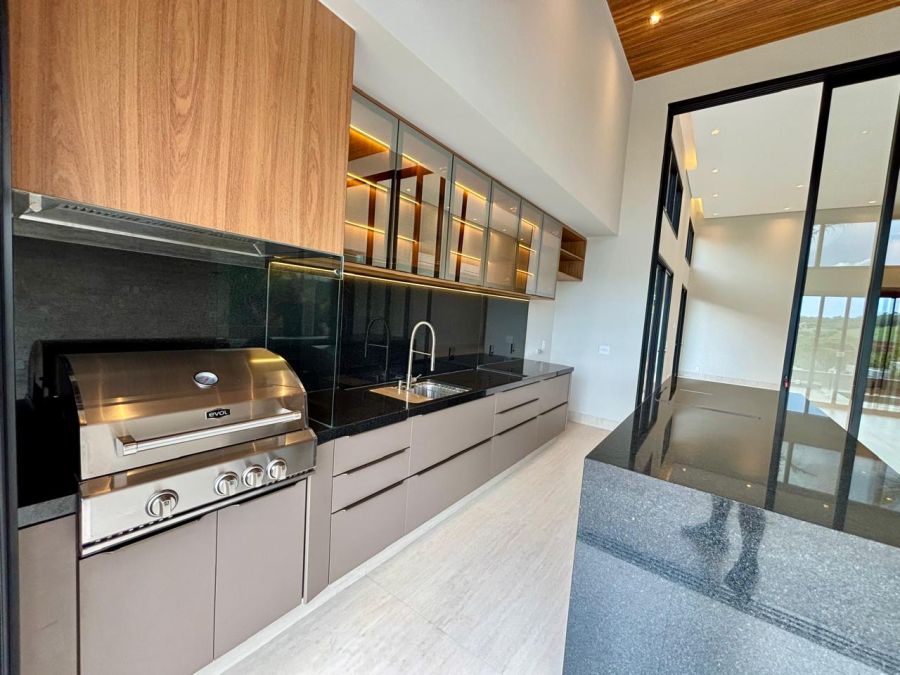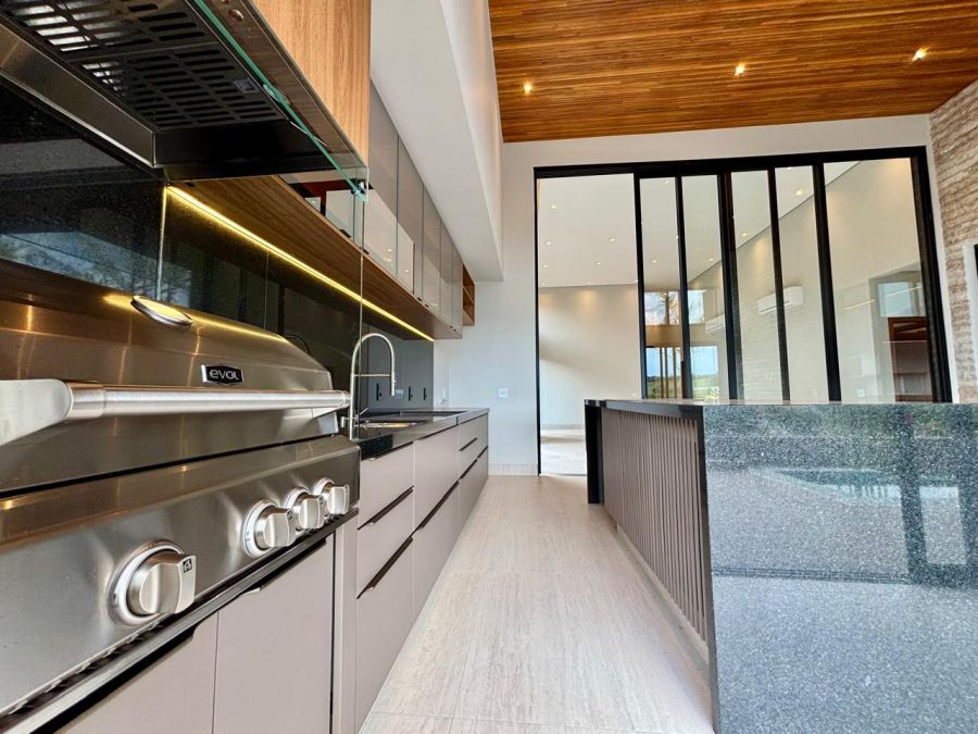 4 suítes - máster com closet (1 reversível para escritório), ampla sala 2 ambientes com bastante iluminação natural, lavabo, cozinha separada e ja equipada com cooktop, coifa, forno e microondas, área gourmet com churrasqueira Evol, piscina aquecida com iluminação e hidro, vestiário e lavanderia. Casa completa em armários, iluminação, box e espelhos. Climatizada. Com energia fotovoltaica e aquecimento solar em torneiras e chuveiros. Paisagismo completo. 4 vagas.
