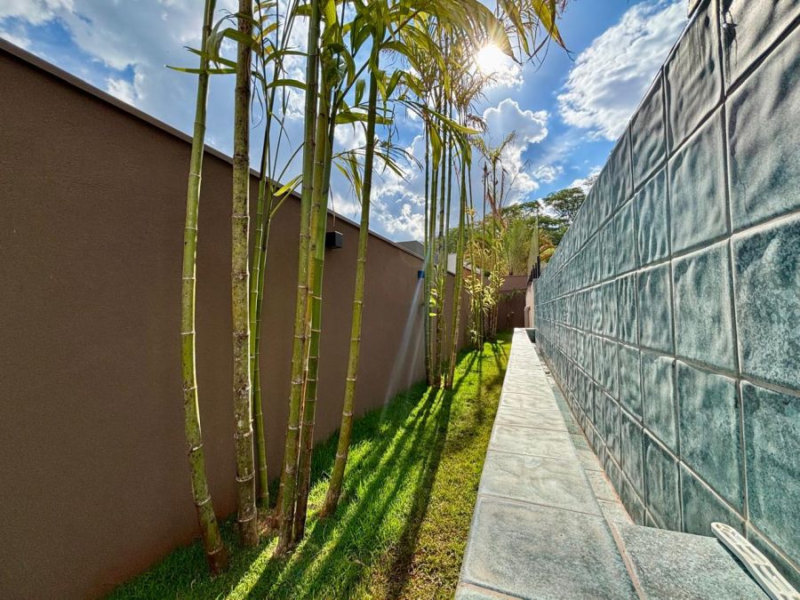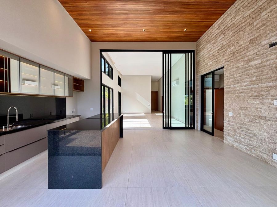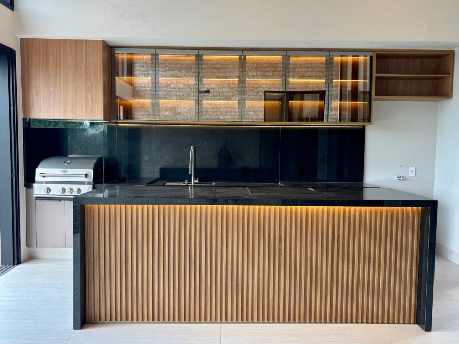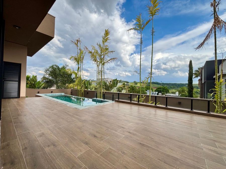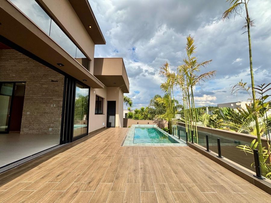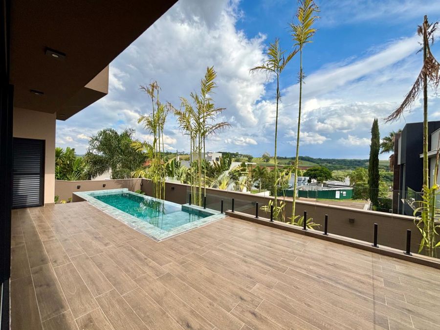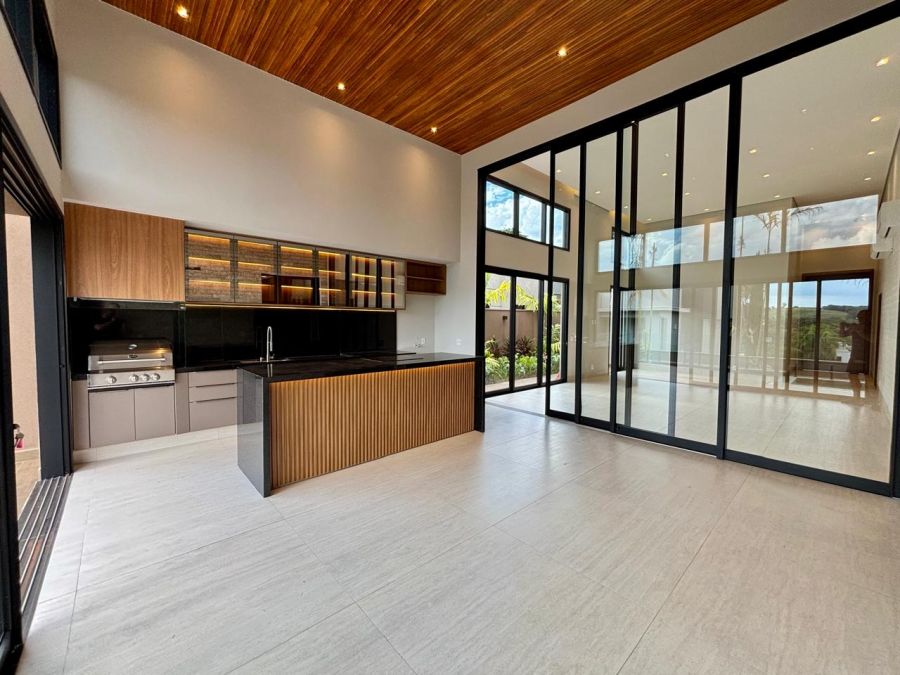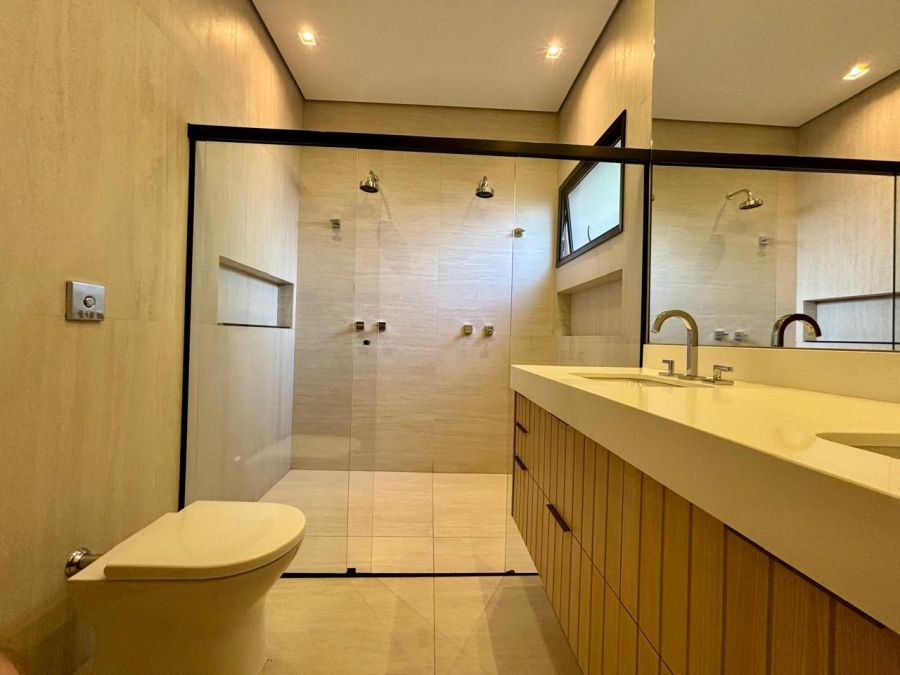 4 suítes - máster com closet (1 reversível para escritório), ampla sala 2 ambientes com bastante iluminação natural, lavabo, cozinha separada e ja equipada com cooktop, coifa, forno e microondas, área gourmet com churrasqueira Evol, piscina aquecida com iluminação e hidro, vestiário e lavanderia. Casa completa em armários, iluminação, box e espelhos. Climatizada. Com energia fotovoltaica e aquecimento solar em torneiras e chuveiros. Paisagismo completo. 4 vagas.