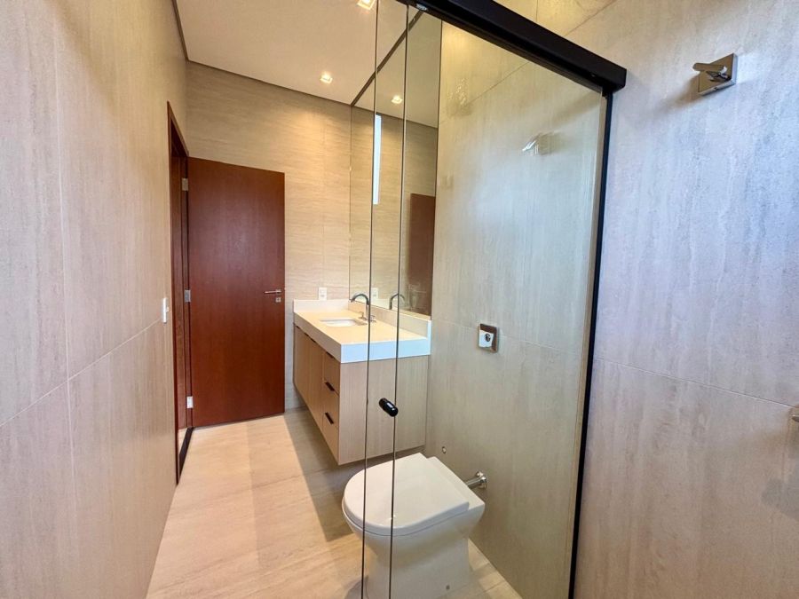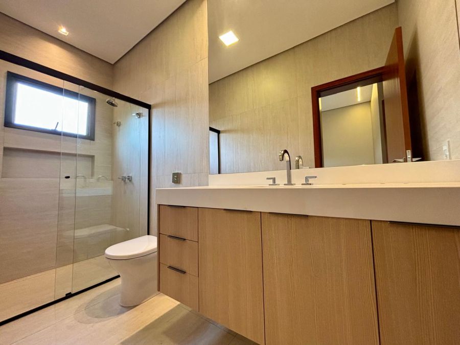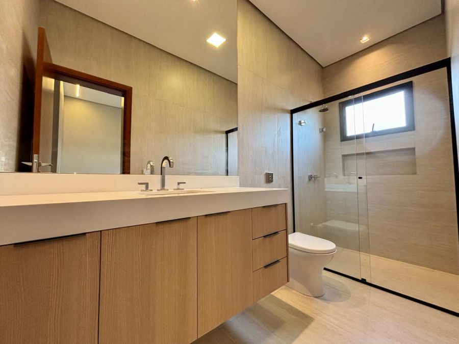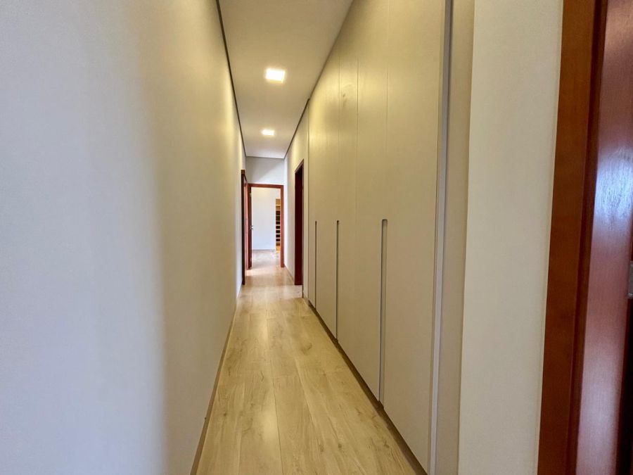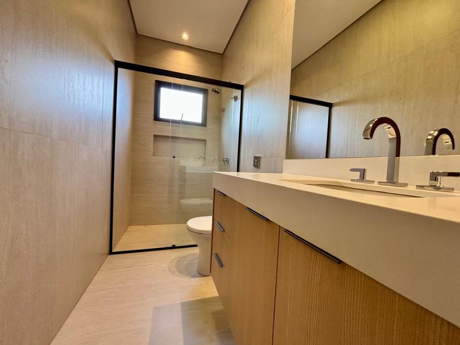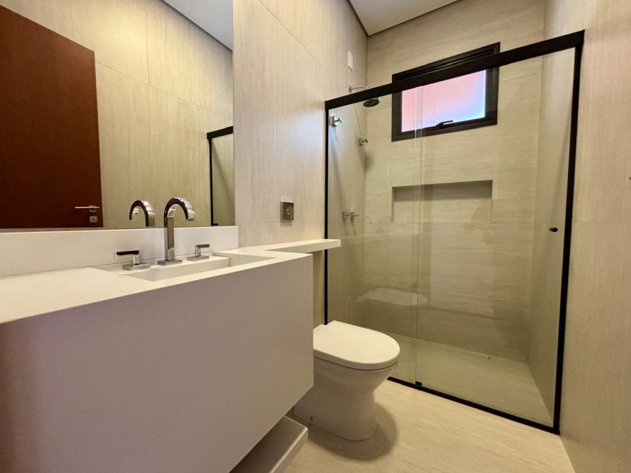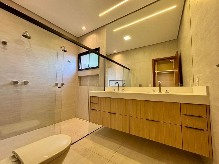 4 suítes - máster com closet (1 reversível para escritório), ampla sala 2 ambientes com bastante iluminação natural, lavabo, cozinha separada e ja equipada com cooktop, coifa, forno e microondas, área gourmet com churrasqueira Evol, piscina aquecida com iluminação e hidro, vestiário e lavanderia. Casa completa em armários, iluminação, box e espelhos. Climatizada. Com energia fotovoltaica e aquecimento solar em torneiras e chuveiros. Paisagismo completo. 4 vagas.
