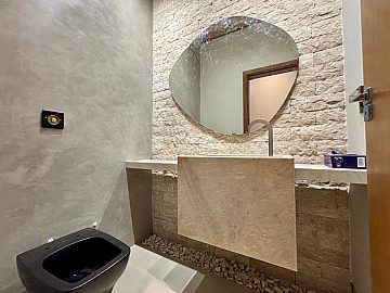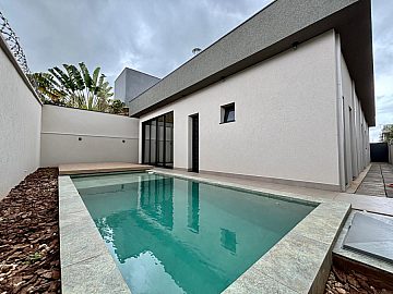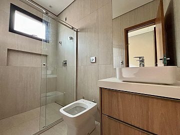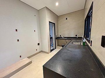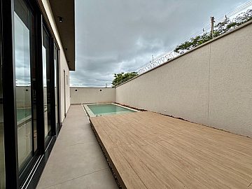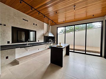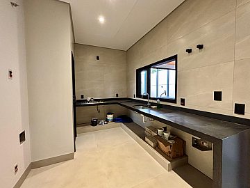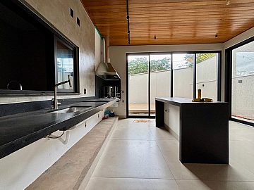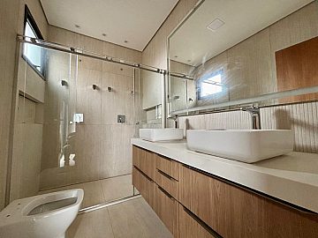 3 suítes com persianas blackout - máster com porta balcão, cubas e chuveiros duplos, ampla sala 2 ambientes com pé direito duplo, escritório, lavabo, cozinha reservada, área gourmet com churrasqueira, piscina em alvenaria com hidro, iluminação e aquecimento, vestiário externo e lavanderia. Completa em armários, box e espelhos. Louças e metais de 1ª linha. Preparação para fotovoltaica, ar-condicionado e lava louças. Fachada imponente. 4 vagas, sendo 2 cobertas.