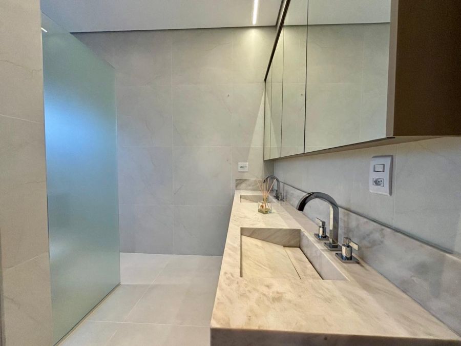- banheiros de todas suítes com box e amplos espelhos;