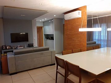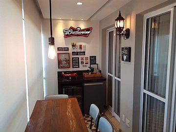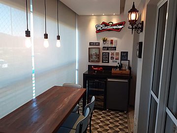 - Sala ampliada de estar e jantar com sacada gourmet fechada com blindex;