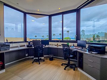 Escritório com vista privilegiada para o condomínio