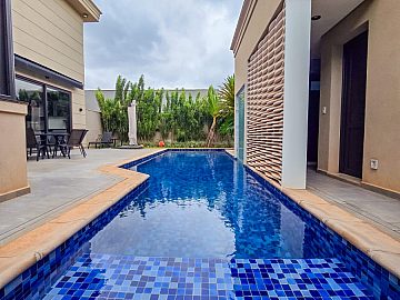 Piscina com sauna integrada para momentos de lazer e relaxamento