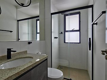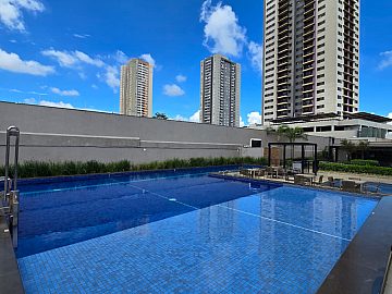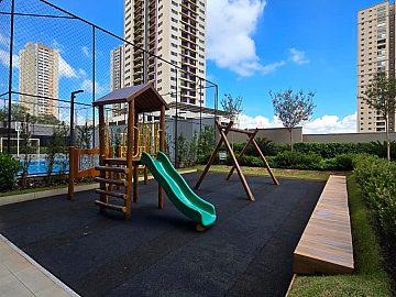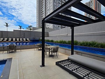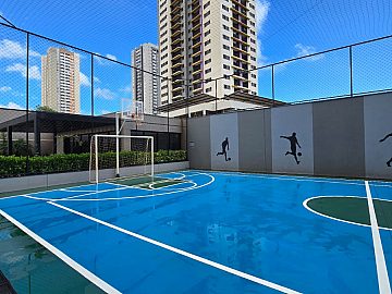 Lazer completo: piscina, spa, academia, salão de festas, espaço churrasco, sala de reuniões, play kids e quadra poliesportiva. Portaria 24h.