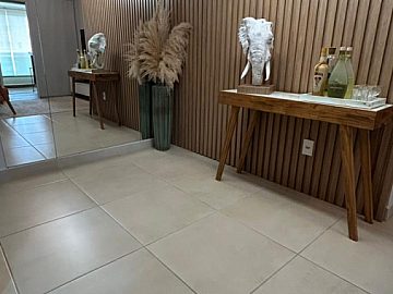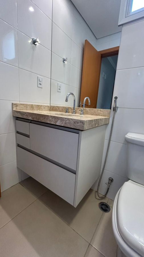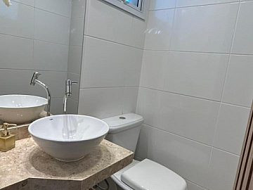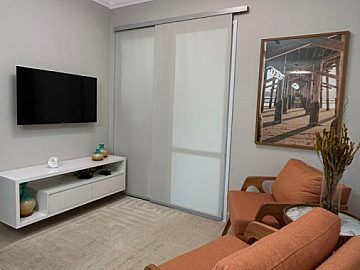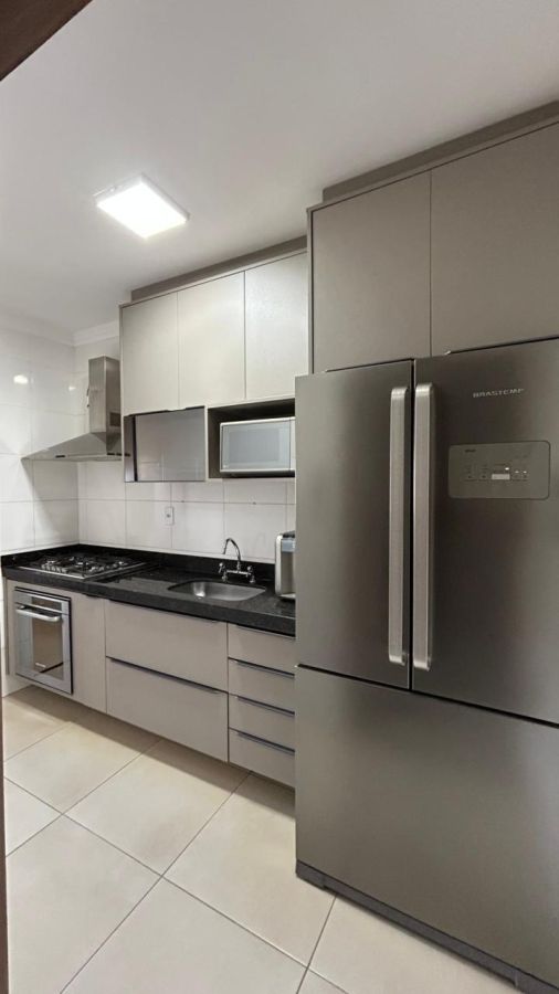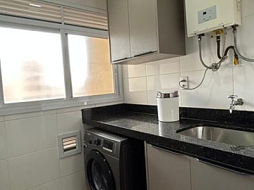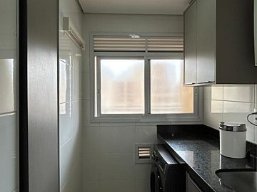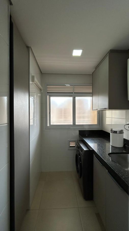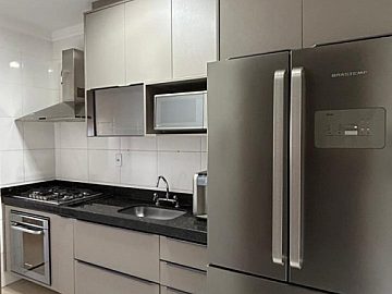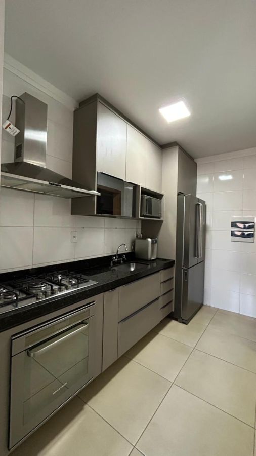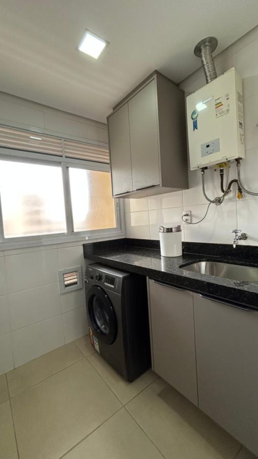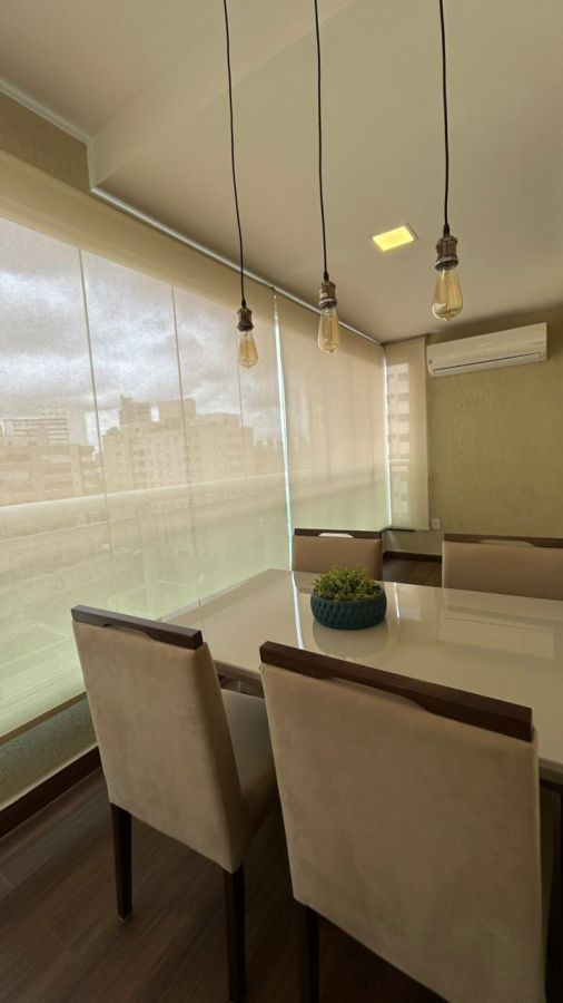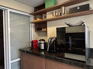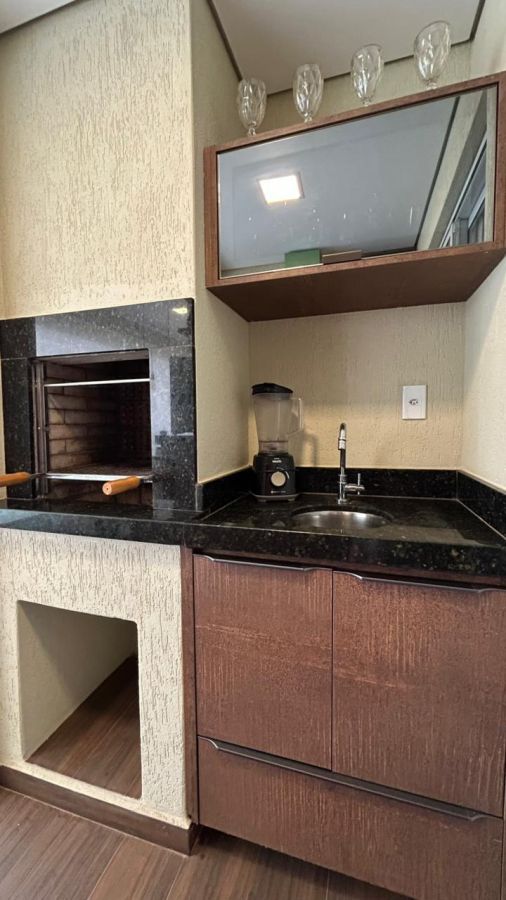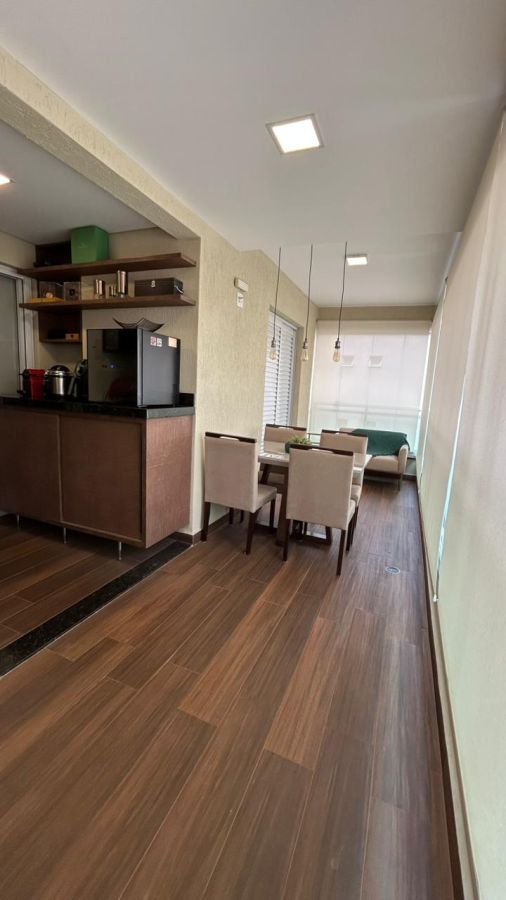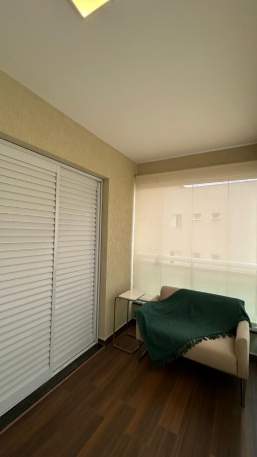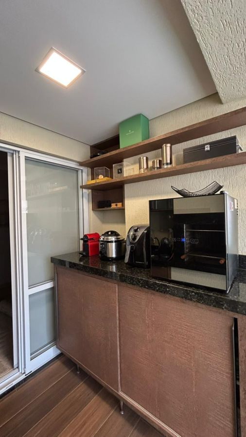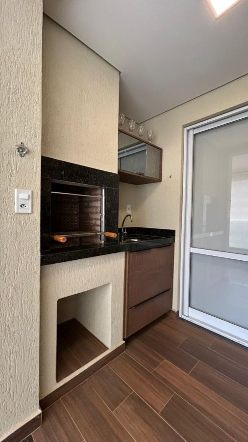 Com 85m², sendo: 2 suítes - uma delas com acesso para a sacada, sala 2 ambientes, sacada gourmet com churrasqueira, fechamento em vidro e persianas, lavabo, cozinha equipada com cooktop, coifa e forno e lavanderia. Completo em armários na suíte principal, cozinha e banheiros. Ar-condicionado na suíte (9.000 BTUs) e sacada (18.000 BTUs). Aquecimento a gás nos chuveiros e torneiras. 2 vagas cobertas.