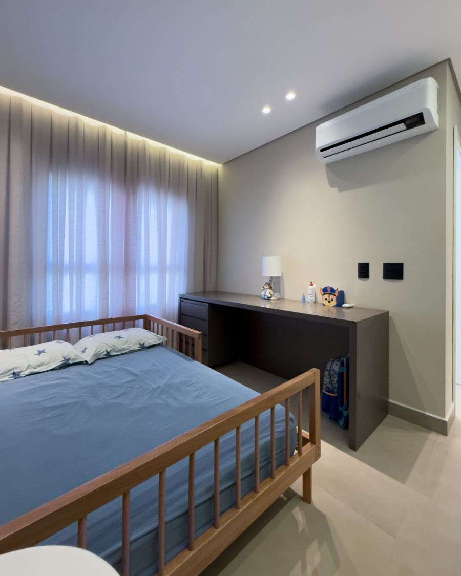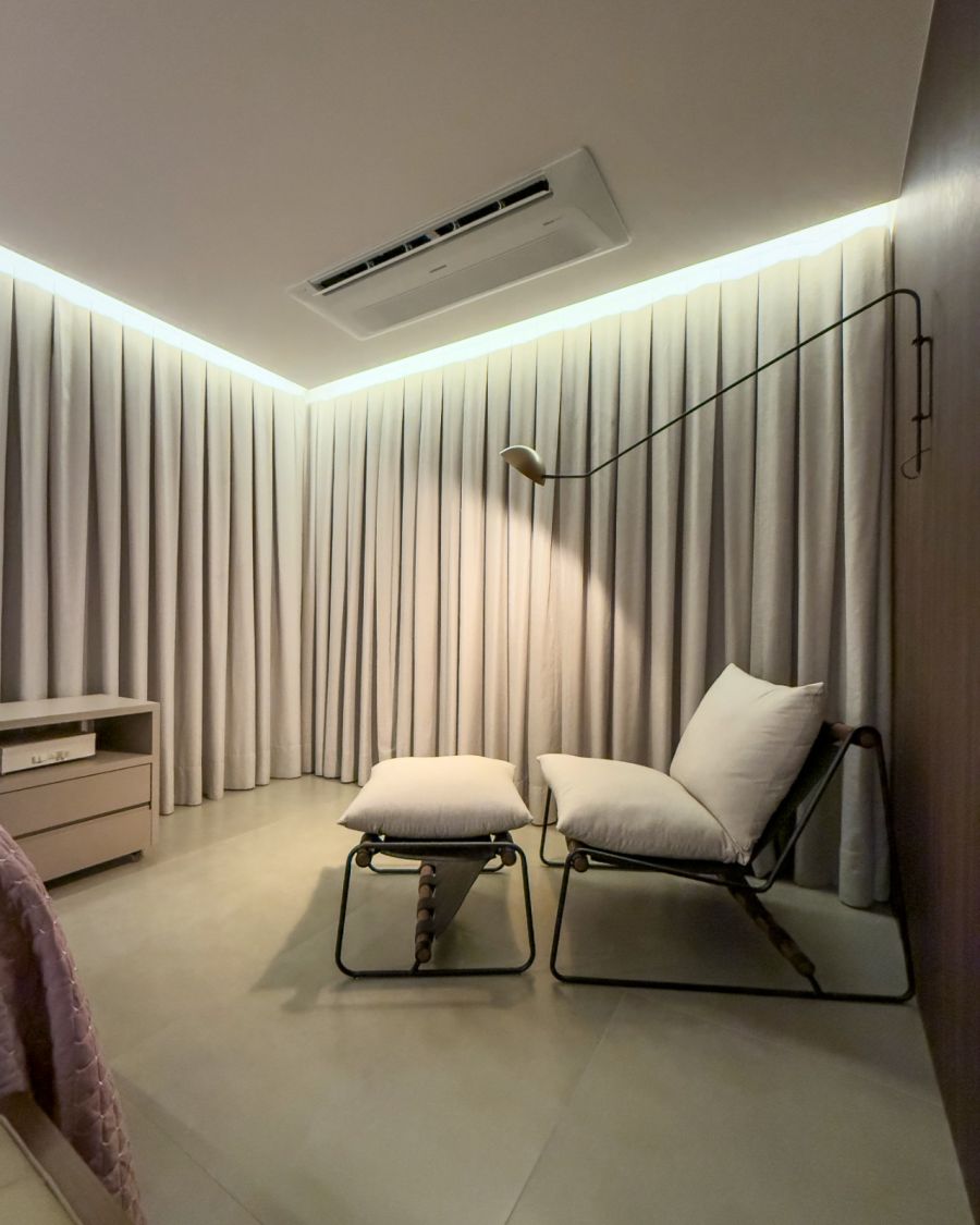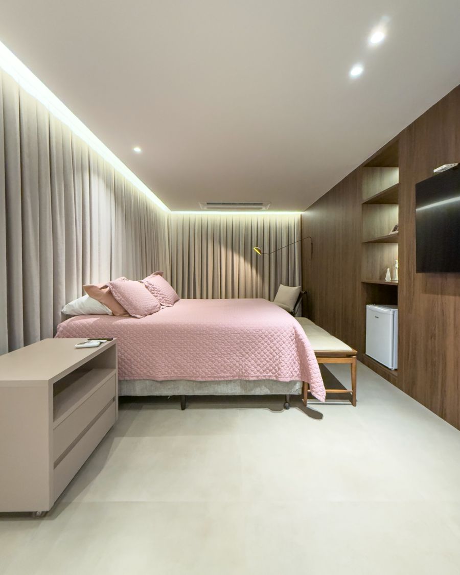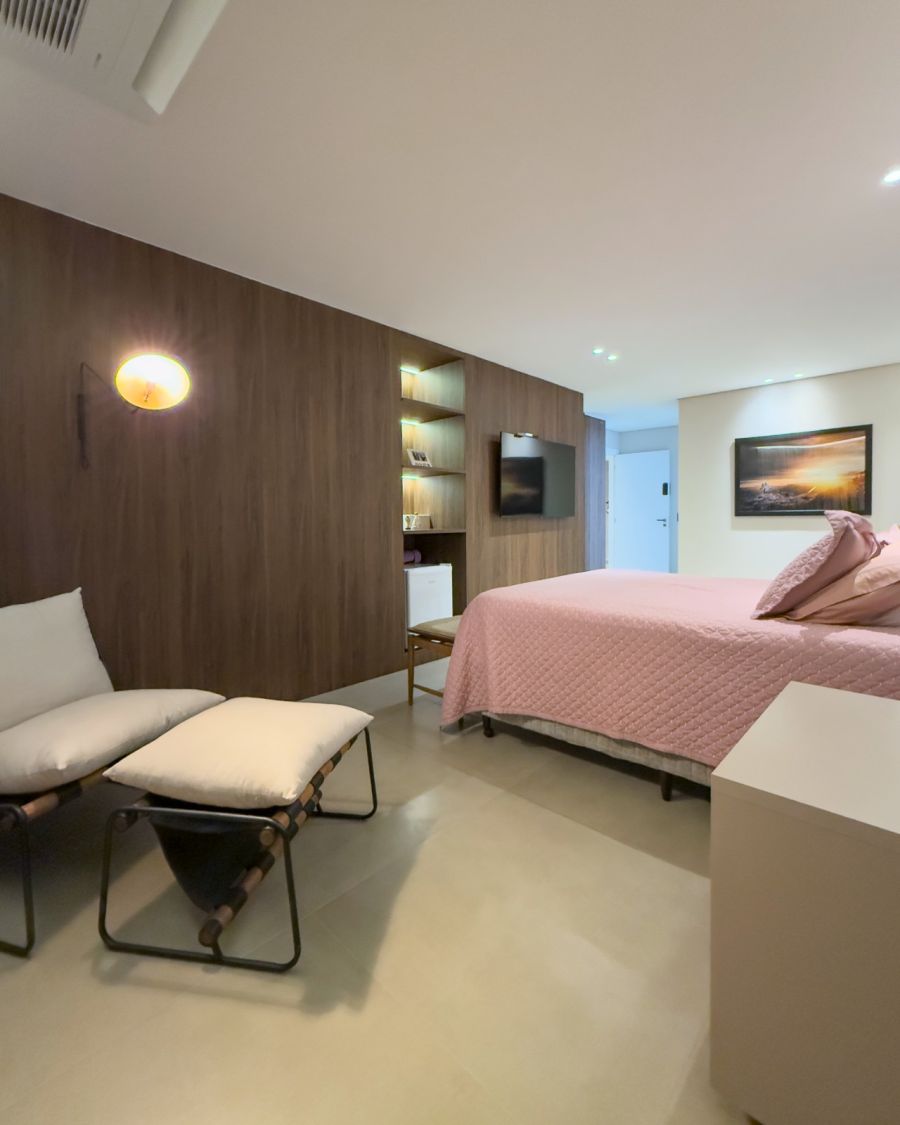 Suíte master com amplo closet e 2 banheiros independentes, proporcionando máximo conforto e privacidade