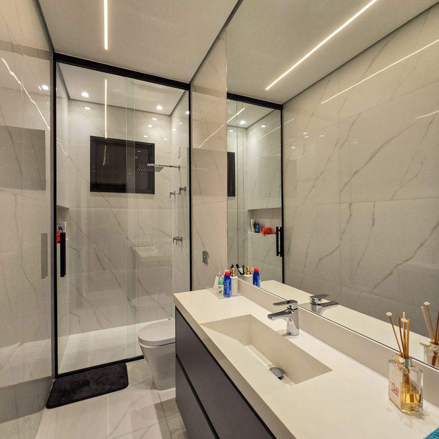 * A casa conta com 03 suítes amplas, sendo a máster com closet, chuveiro duplo e cuba dupla.