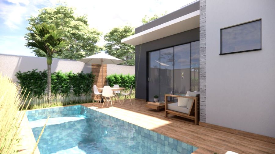 Casa térrea com 4 dormitórios sendo 2 suítes, escritório, lavabo, sala de TV, sala de jantar, cozinha gourmet completa com cooktop e coifa, área de serviço, piscina de vinil e vestiário. Completa em armários, iluminação, box e espelhos. Garagem para 4 carros (2 cobertos e 2 descobertos).