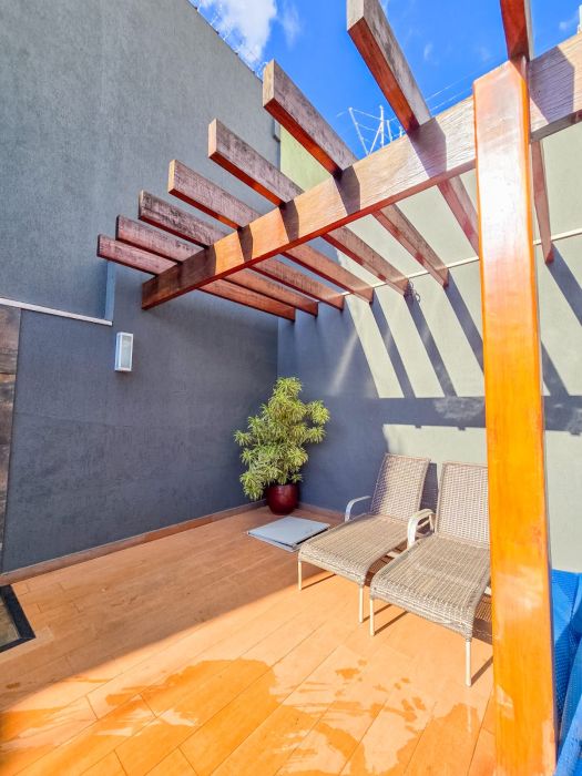 A área externa convida ao relaxamento e ao lazer, com uma elegante piscina aquecida, perfeita para desfrutar momentos memoráveis em qualquer estação.