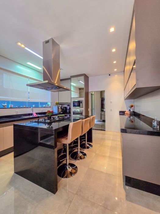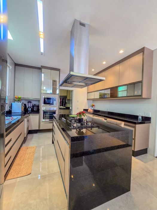 O projeto contempla 4 suítes amplas, ambientes sociais integrados com excelente iluminação natural, living para dois ambientes, escritório privativo, além de uma cozinha independente conectada ao espaço gourmet, ideal para receber com requinte.
