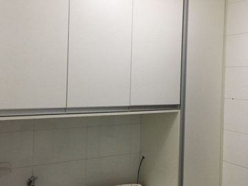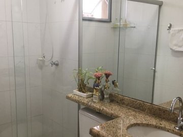 Apartamento de 82m², sala com dois ambientes, dois dormitórios sendo uma suíte, banheiro social, cozinha ampla, lavanderia e sacada. Rico em armários planejados nos quartos, banheiros, cozinha e lavanderia. O prédio conta com portaria 24h, salão de festas, área de churrasco, elevador social e de serviços e acessibilidade.